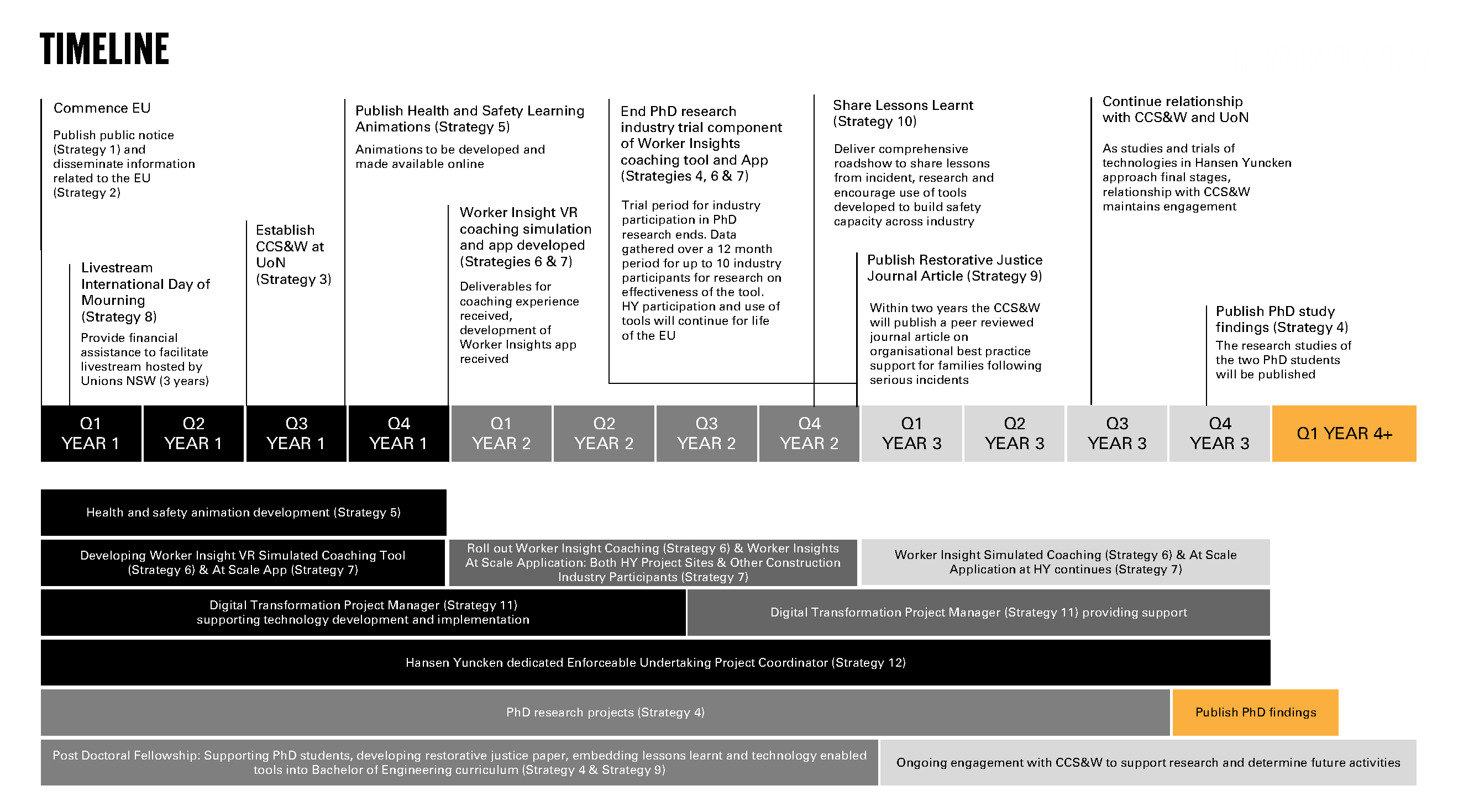 As part of the Undertaking, we have committed to implementing a range of initiatives over the next three years. We will work closely with SafeWork NSW to ensure we meet the Undertaking requirements and continually improve our health and safety practices.